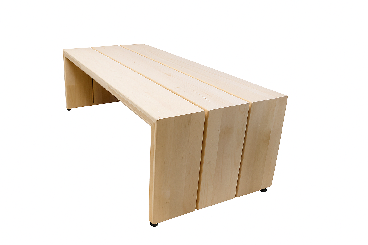 Tämä moderni saunanpenkki on valmistettu kolmesta vierekkäin olevasta massiivipuisesta liimapuulankusta, joiden jiirit on työstetty millintarkasti. Jiirit on vahvistettu perinteisillä puusepänliitoksilla, joten penkki on rakenteellisesti erittäin kestävä eikä vaadi näkyviä tukirakenteita. Lopputuloksena on pelkistetty ja elegantti ilme, joka sopii niin perinteiseen kuin moderniin sauna- ja kylpytilaan.